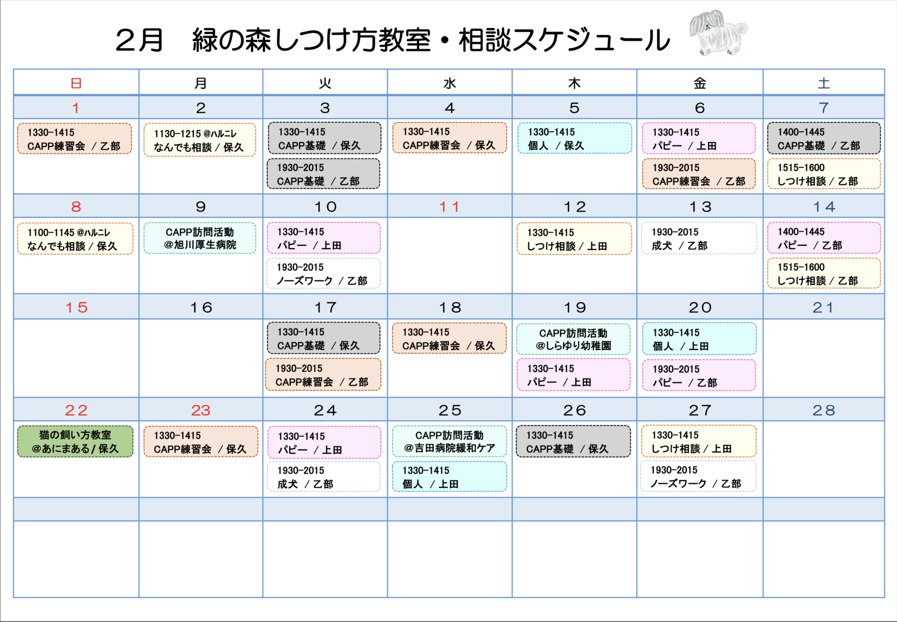 2月しつけ方教室スケジュールのお知らせです